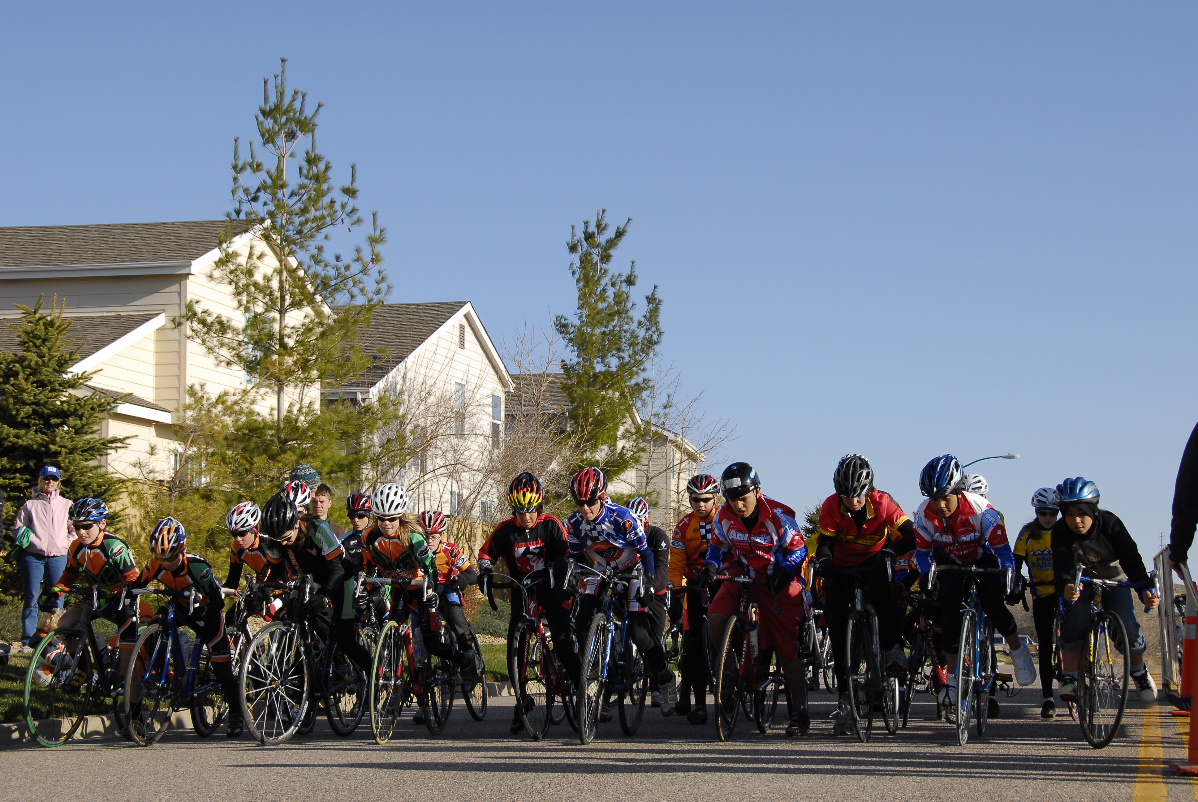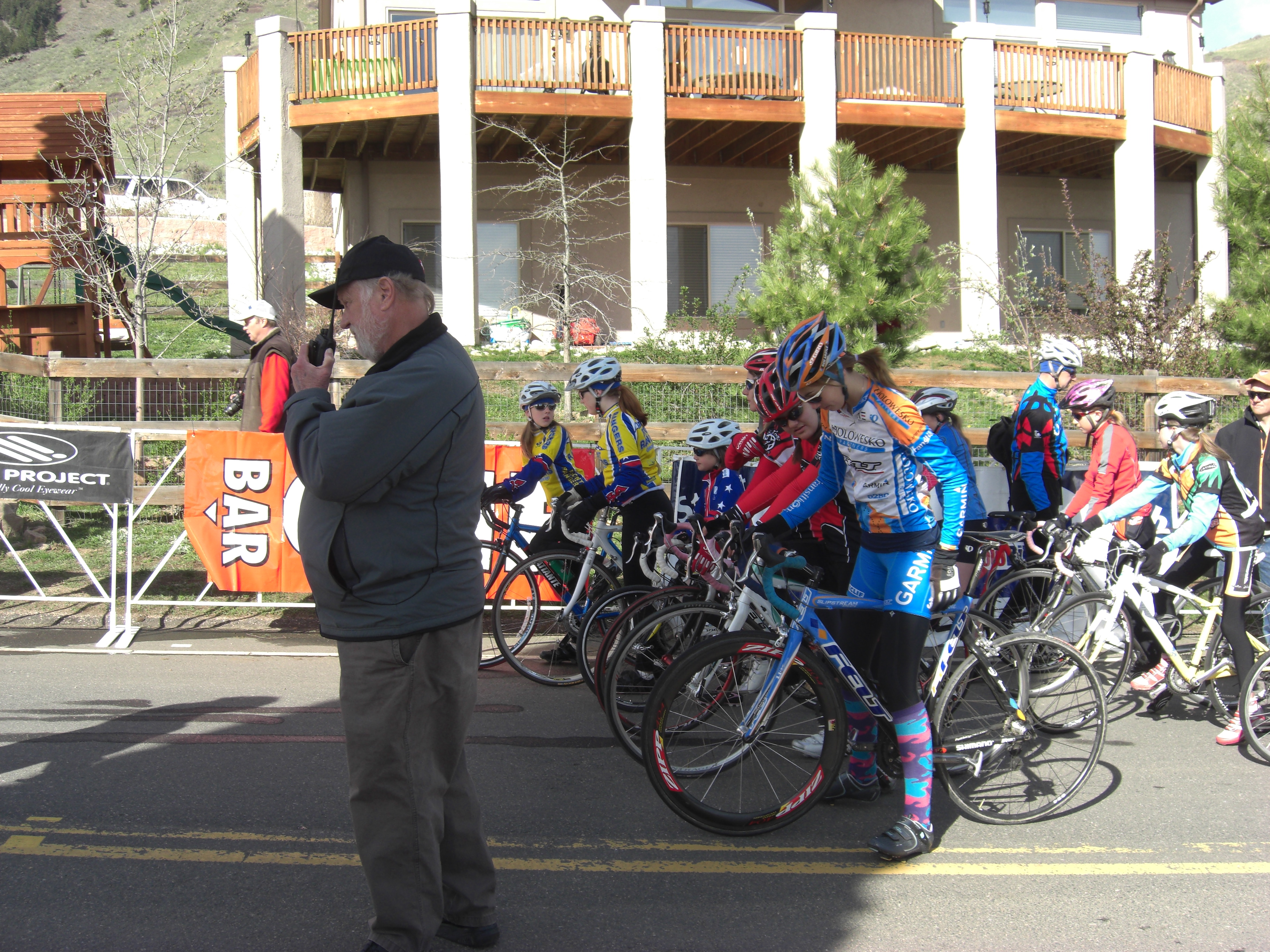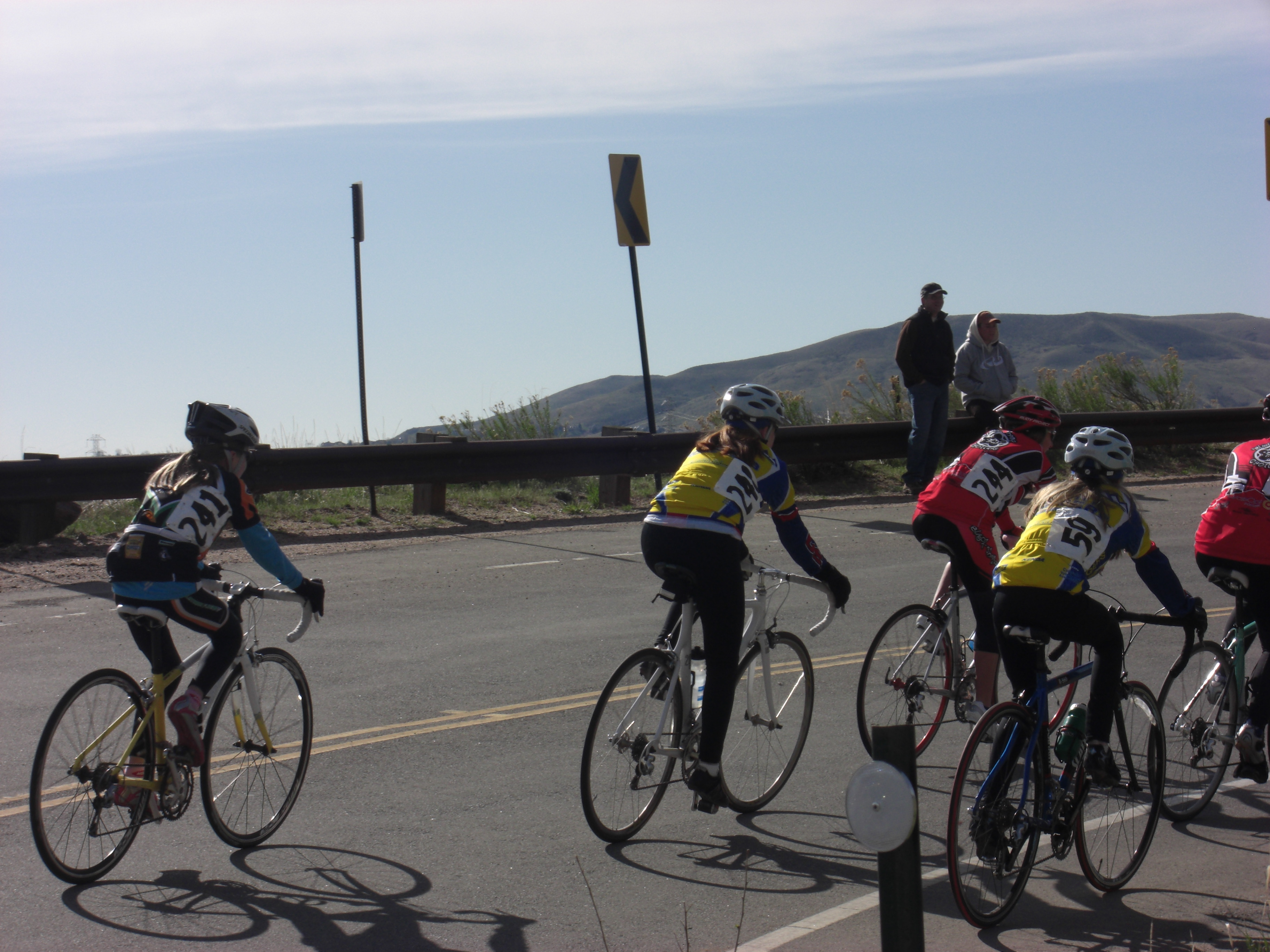 The girls strategically placed themselves in the back of the pack for the start..... Very good race for their first road race ever.